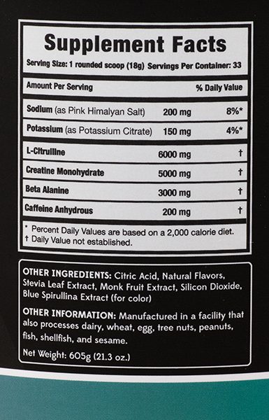 By increasing nitric oxide production, L-citruline widens blood vessels to send more oxygen and nutrients to your muscles, resulting in better endurance and higher performance with increased focus.